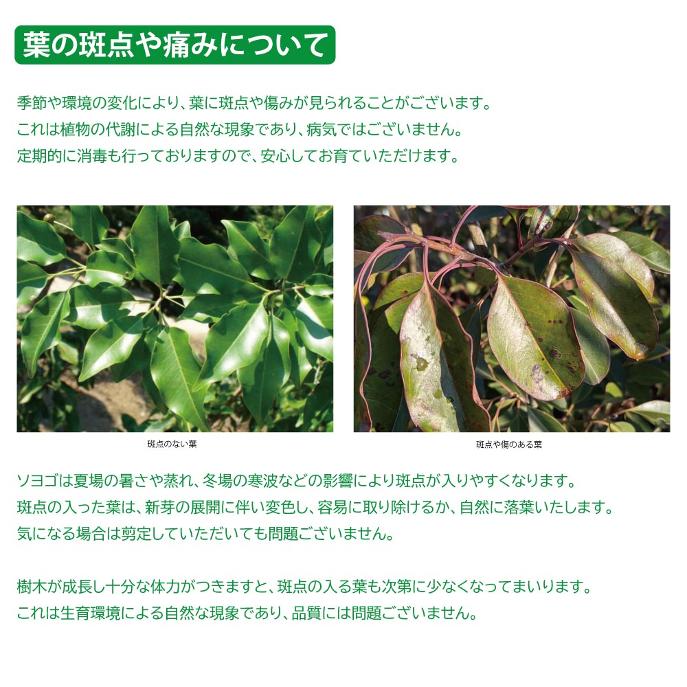 【ソヨゴ】(冬青) 読み:そよご 学名:Ilex pedunculosa モチノキ科モチノキ属 常緑高木 別名:フクラシバ、フクラシ、ソヨギ 【名前の由来】 葉が風にそよぎ「ソヨソヨ」と音をたてることから。 【商品情報】 ソヨゴはあまり葉が密に生えず自然樹形になるのが特徴です。葉は皮質で風でふれあうと「ソヨソヨ」と音がします。一年を通して葉が付いています。雌雄異株で、オスは5〜6月ごろに小さな白い花を咲かせます。メスは9月から12月頃にかけて小さな赤い実がなります。自然庭園では落葉樹が多くなるため、自然風常緑樹としてよく使われて人気があります。ソヨゴは雄と雌の木があります。この商品は種子から生育しているため、性別が分かりません。そのため雄雌の指定が出来ません。予めご了承ください。