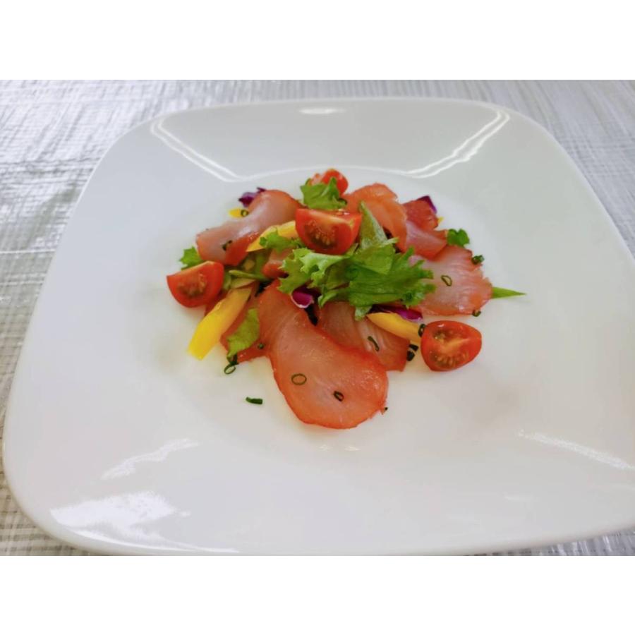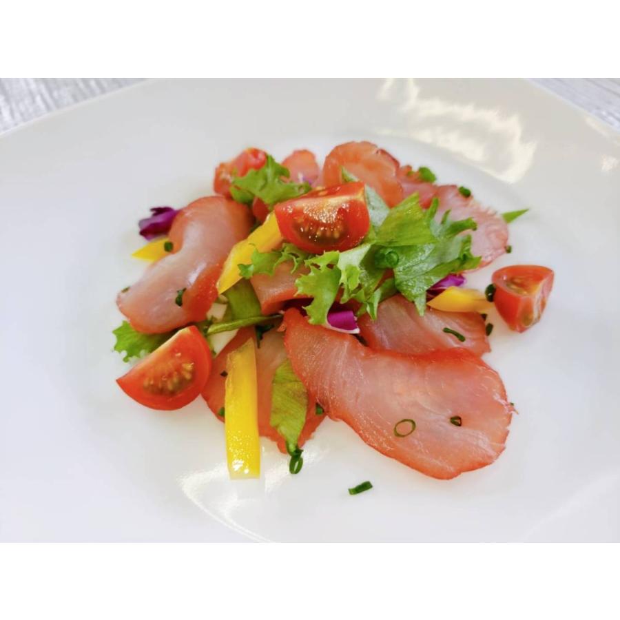お皿に綺麗に並べてお好みでバジルやリーフレタスなどを散らしてオリーブオイルを掛けてカルパッチョに♪