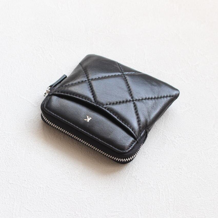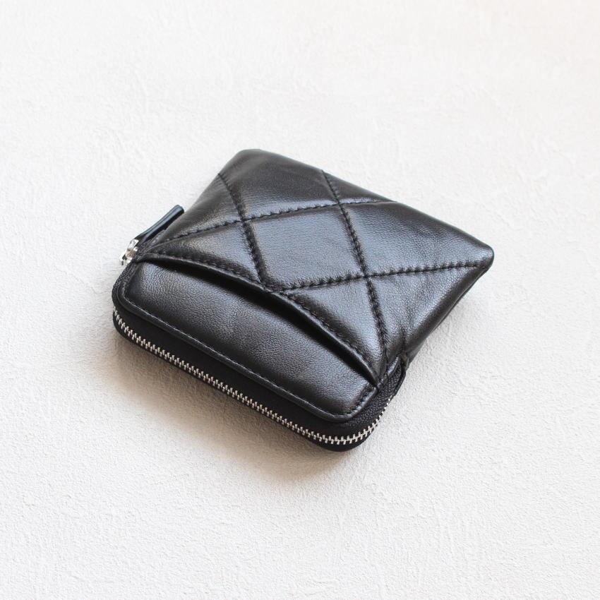 本革 名入れ カードケース付き ポーチ キルティングレザー ミニ財布 ポーチ ミニウォレット 財布