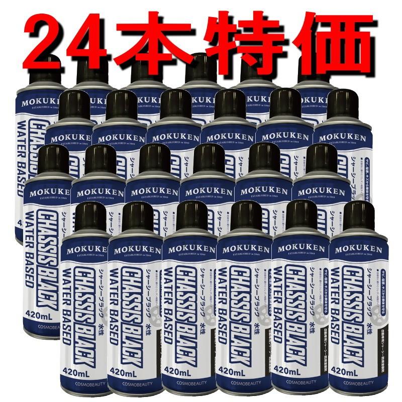 シャーシブラック水性 24本セット ■商品内容:自動車の車検整備及び補修などが手軽にできる、密着性に優れたウレタン樹脂タイプの水性シャーシー防錆保護剤です。■商品番号:15458 ■内容量:420ml ■容器:缶■タイプ:エアゾール■種別:第2石油類■メーカー:コスモビューティー (モクケン)