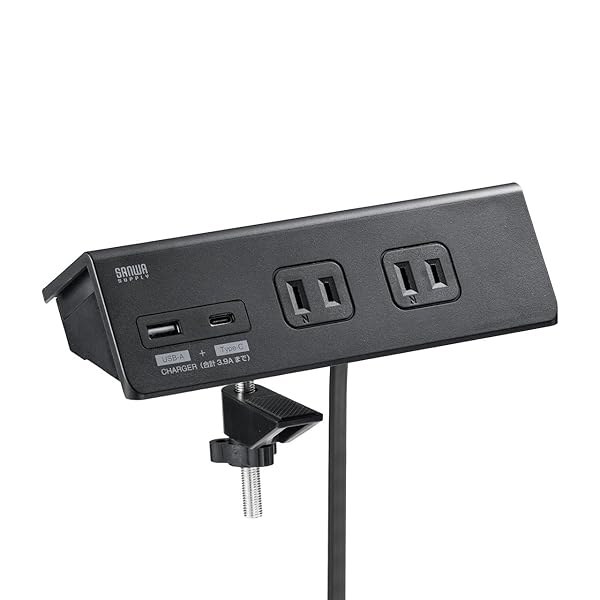 サンワダイレクト 卓上電源タップ クランプ 固定式 AC4個口 USB-C×1/USB-A×1 3m 一括集中スイッチ 卓上 固定 電源タップ ブラック 700-TAP047UC-3BK