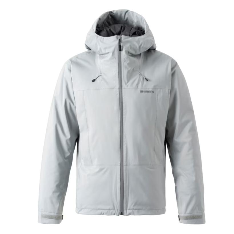 シマノ独自の防水透湿基準ドライシールド+をクリアしたメンテナンスしやすい化繊インサレーションレインジャケット。少ない枚数で暖かく軽い着心地を実現するサーマルレイヤードに適したアイテムで、従来品RB-04JUと比較してメインのインサレーションを125%へ増量しました。釣りの動きを考慮し、100g/m2、80g/m2のインサレーションを寒さを感じやすい部位と可動性を重視する部位に合わせて配置し動きやすさにも配慮しています。