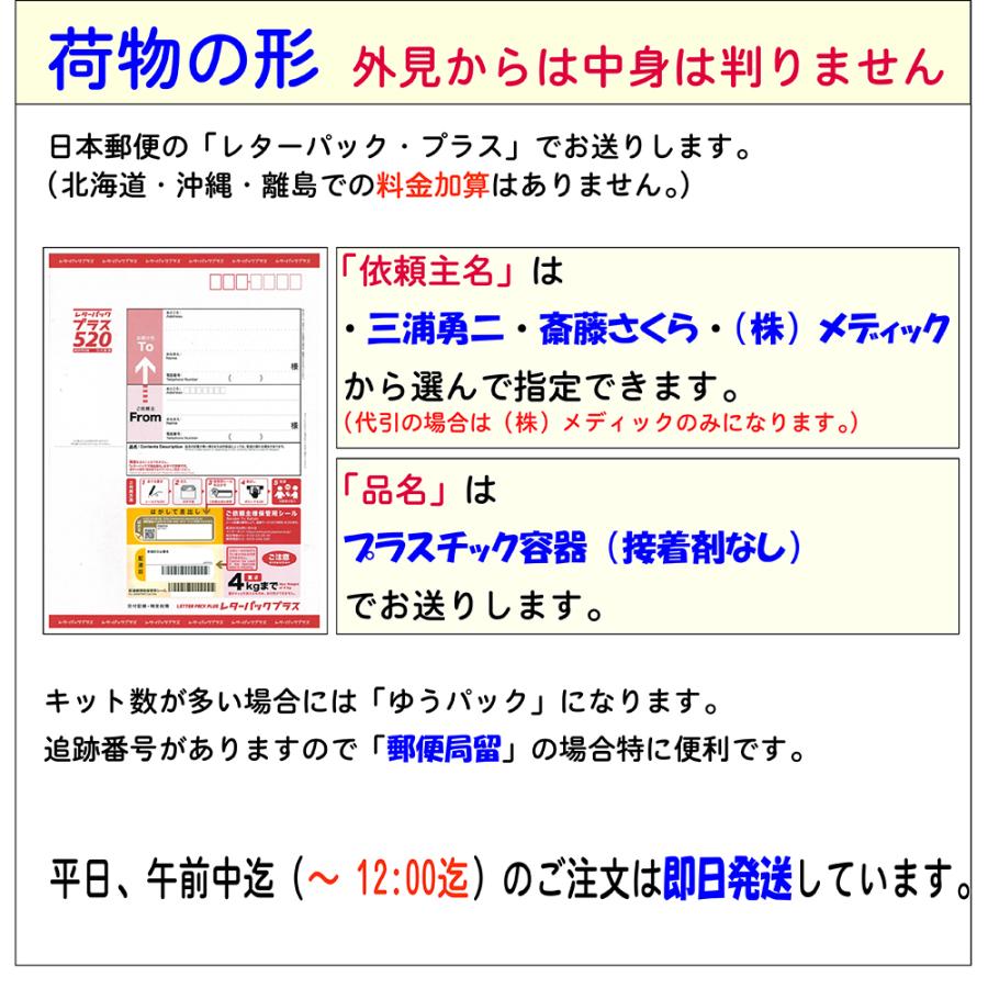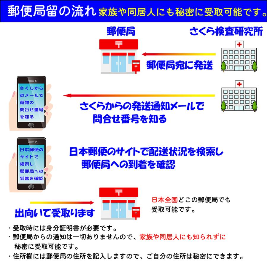 ■ 検査内容:梅毒■ 検査結果の通知方法は、検体返送時の「検査申込書」で指定します。・インターネットで検索・メールで受信・普通郵便で「検査証」を受領・郵便局留で「検査証」を受領・電話問合せが指定できます。(複数指定も可能)指定方法の詳細 URL(弊社サイト)は、https://www.medic-jp.com/m3write.html「受注確認メール」にも記載しています。