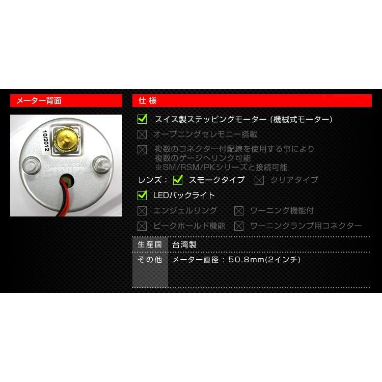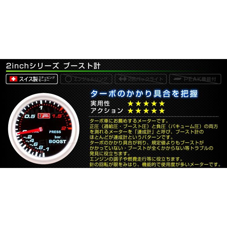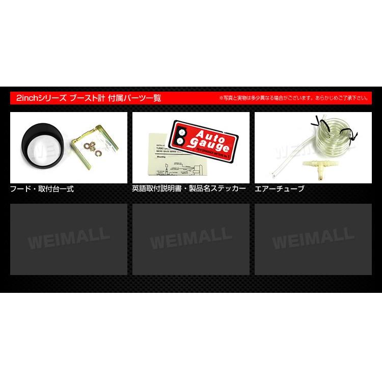 ターボのかかり具合が判り、規定値よりもブーストがかかっていない/ブーストが全くかからない等トラブルの発見に役立ちます。エンジンの調子や燃費走行等に役立ちます。針の回転が眼をみはり、機能的でターボ車で使用度が多いメーターです。【オートゲージ仕様】機械式メータースモークフェイスメーター径50.8mmLEDバックライト【オートゲージ付属品】英語版取扱説明書、配線など爆買い