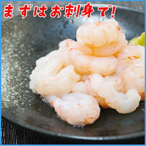 ●甘えびぐるむき(生食用)原材料:甘エビ(国産)内容量:500g(70〜90尾前後)加工地:ベトナム加熱調理の有無:解凍してそのままお召し上がりください賞味期限:商品に業務用冷凍庫保管での賞味期限が記載されますが、ご家庭用冷凍庫での保管は1ヶ月を推奨しております。送料:送料無料※沖縄県配送追加1,000円