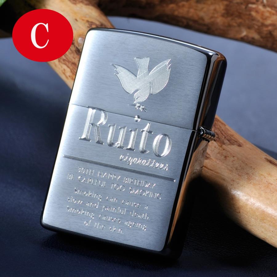 定番人気のZIPPOライター 名前だけいれても面白くない!そんなかたにタバコケース柄風デザインをつくってみました! 名前やメッセージ部分を変更して ユニークなボキャブラリーのあるライターがうけてくれそうです!■レギュラーサイズ:35x53mm■専用BOX■素材:真鍮 ■加工:サテン仕上げ(両面)、ポリッシュ仕上げ (サイド・トップ・ボトム部分)