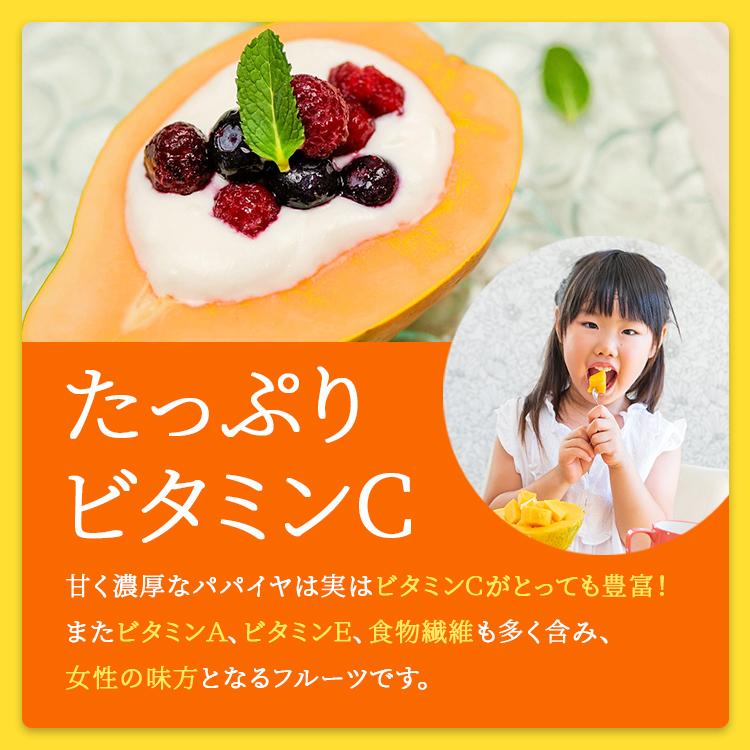 また、パパイヤにはビタミンCの他、ビタミンA,ビタミンE,食物繊維も多くまれ、女性の味方となるフルーツです。