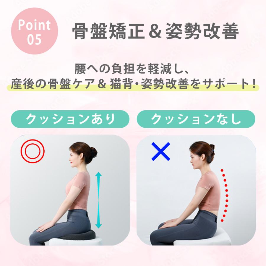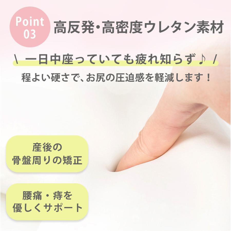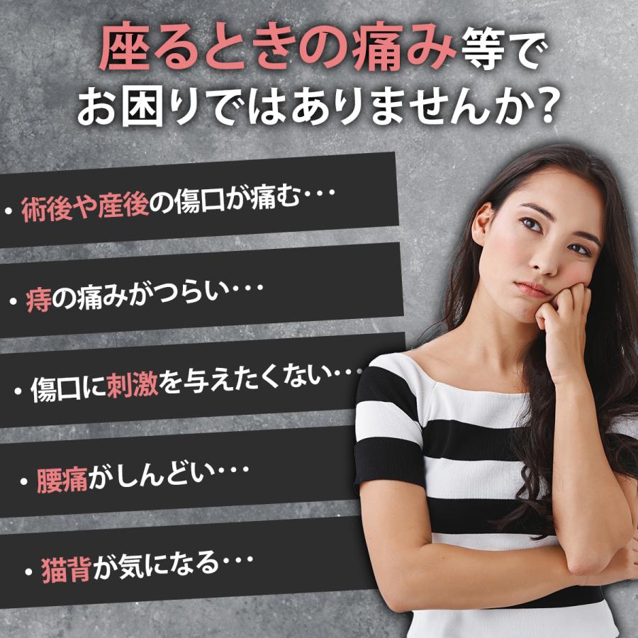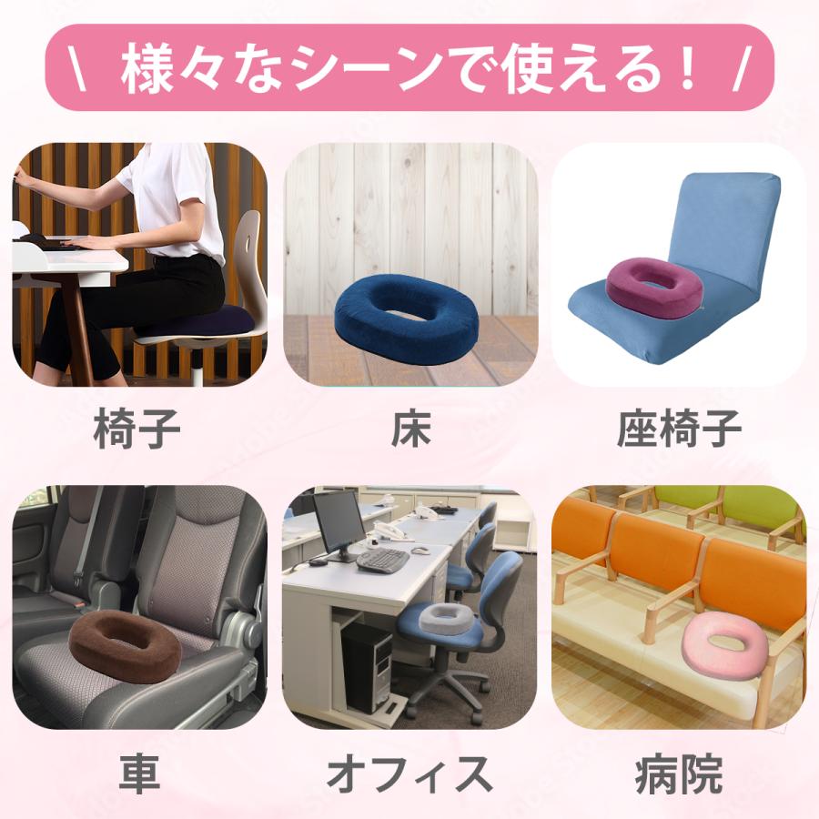 ドーナツ型のデザインが中心部分への圧力を防ぎ、産後や痔などデリケートな状態でも安心して使用可能です。