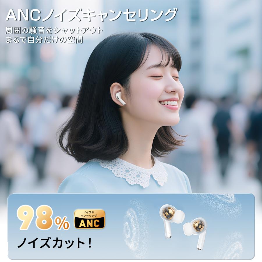 Bluetoothイヤホン / ワイヤレスイヤホン / タッチディスプレイイヤホン / アクティブノイズキャンセリング / ANC / ENC / 自動ペアリング / iPhone対応 / Android対応 / 高音質 / 長時間再生 / 防水 / 防汗 / スポーツイヤホン / コンパクト / 片耳 / 両耳 / マイク内蔵 / ワイヤレスヘッドセット / 快適装着