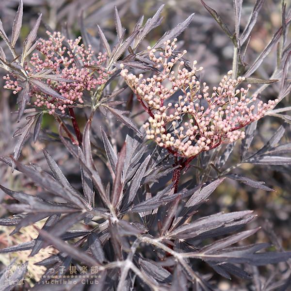 別名西洋ニワトコブラックレース。葉がレース状になる美しい品種で、花は淡いピンク色でとてもいい香りを漂わせます。