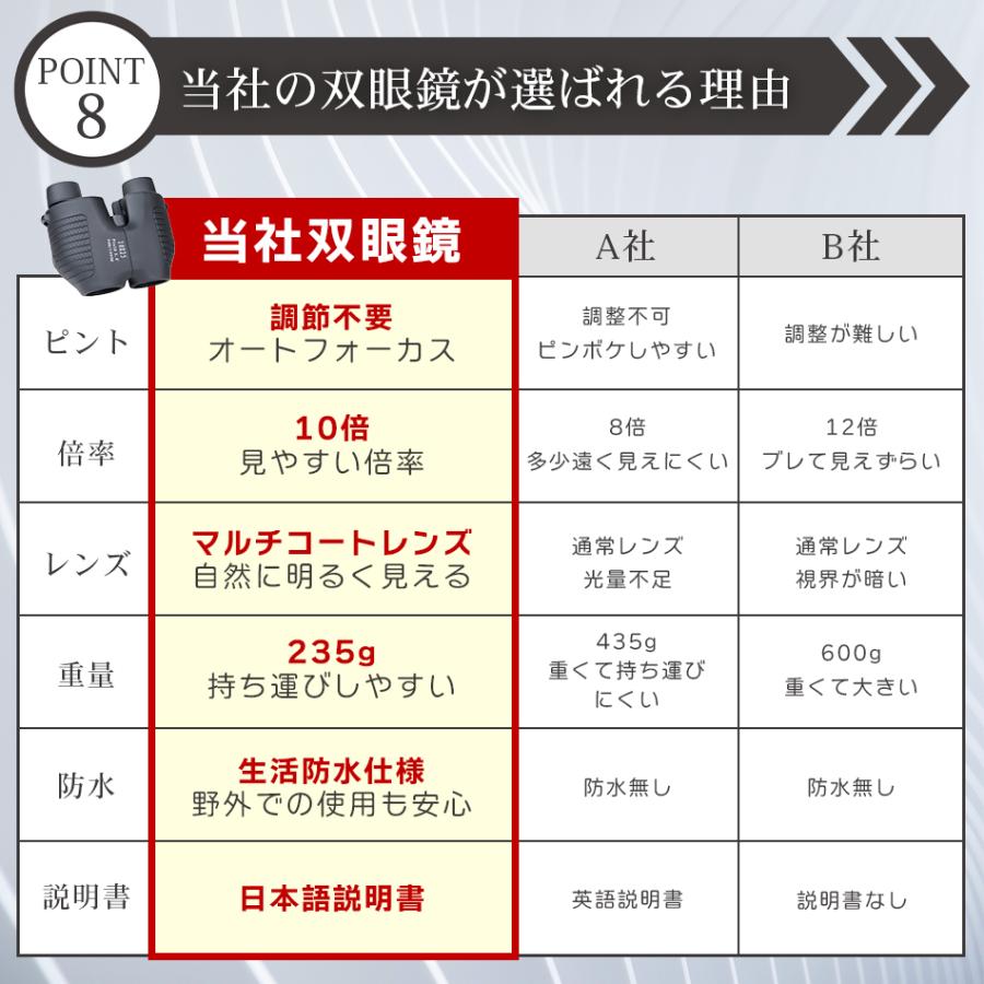 この双眼鏡で、迫力ある映像と大切な瞬間を思いのままに捉えましょう。面倒な操作は不要、軽量で持ち運びも簡単。アウトドアやイベントがもっと楽しくなる双眼鏡を、ぜひお試しください。