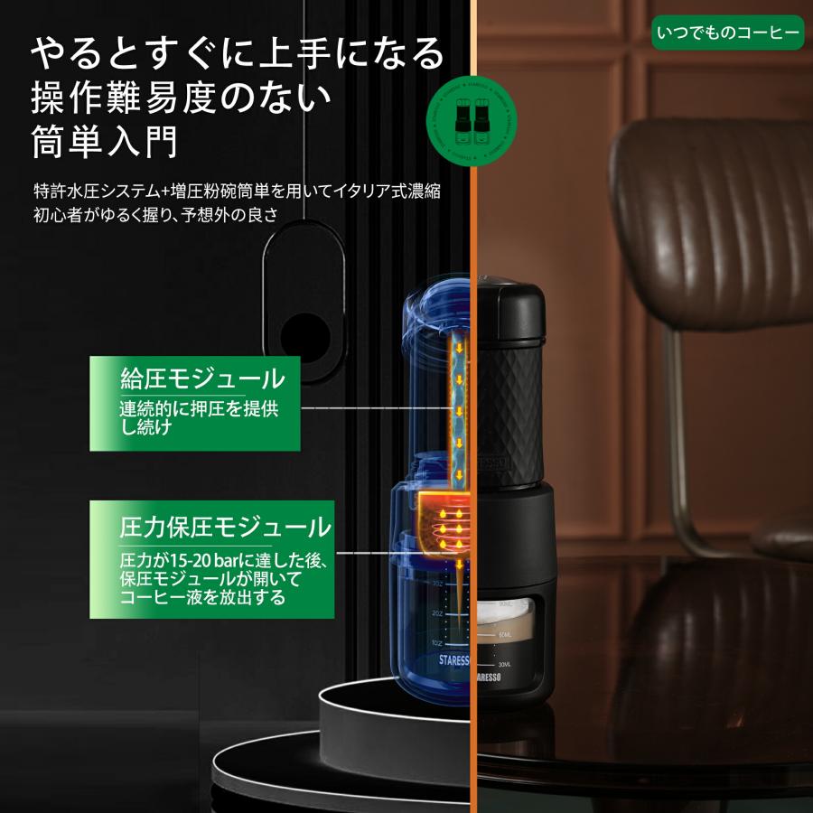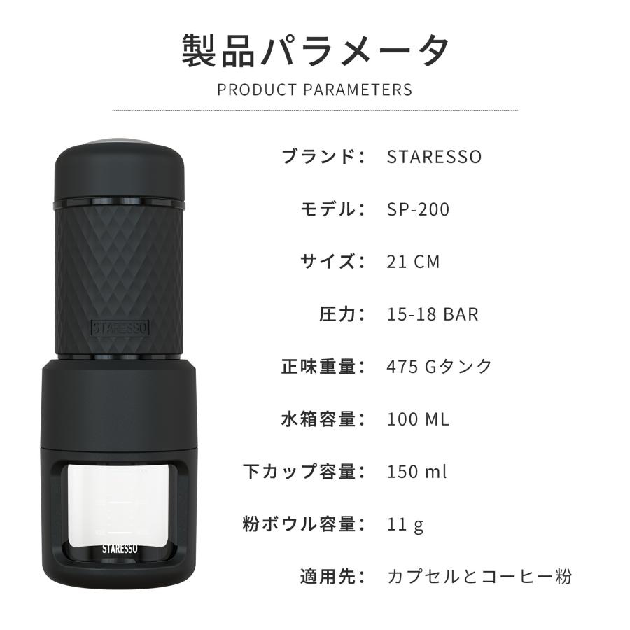 【2年保証】STARESSO公式 ポータブルエスプレッソマシン SP200 手動コーヒーメーカー 挽いたコーヒー対応 小型旅行用コーヒーメーカー プレスによる手動操作