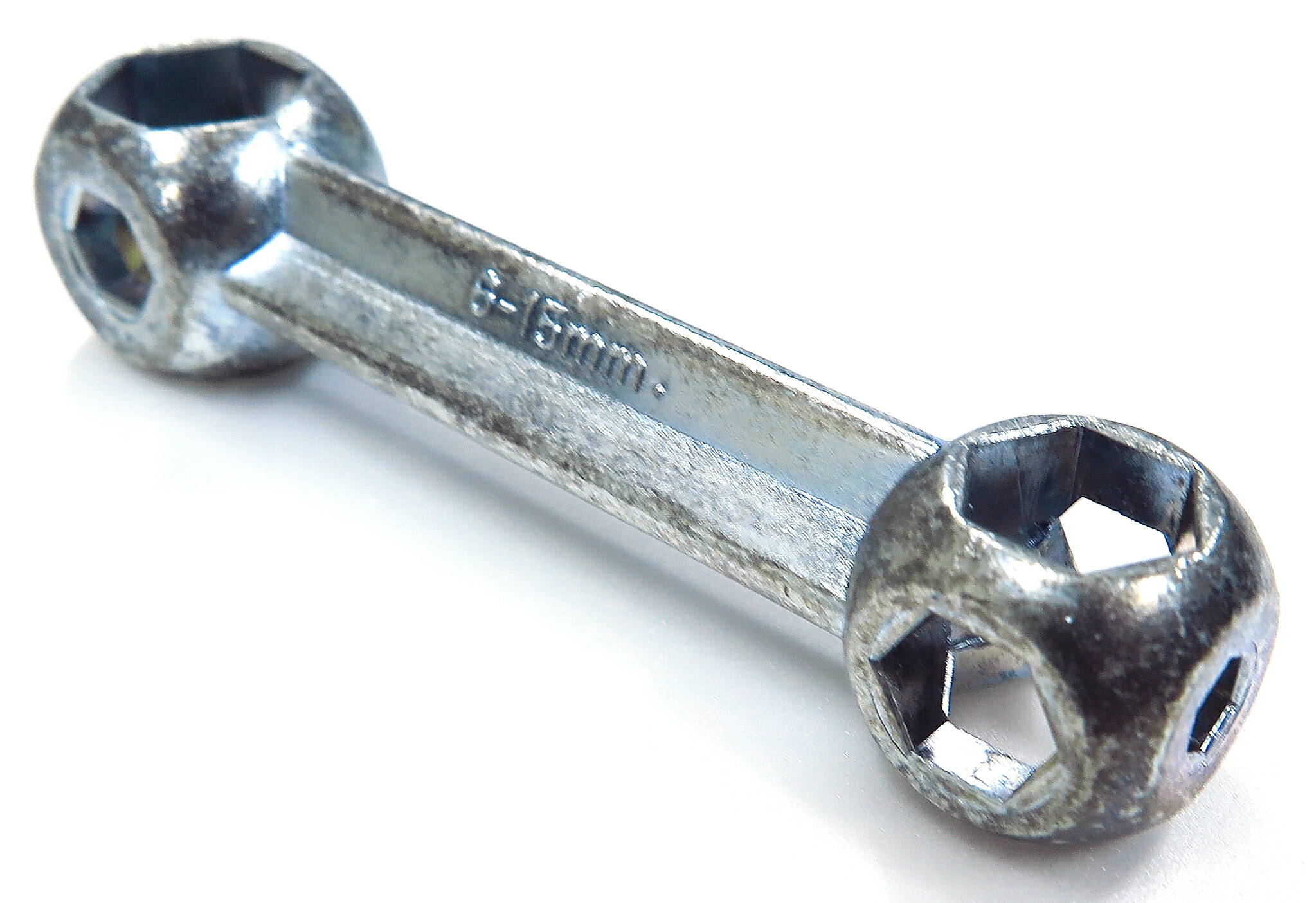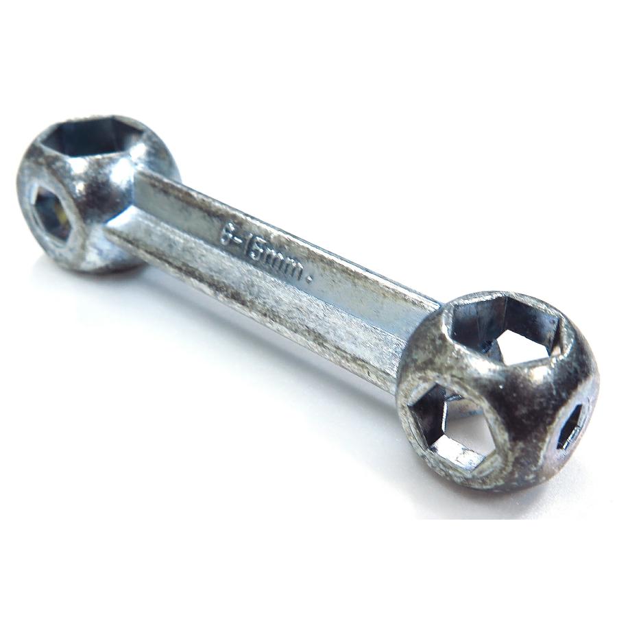 6〜15mm対応のダンベル型の握りやすい万能レンチ。