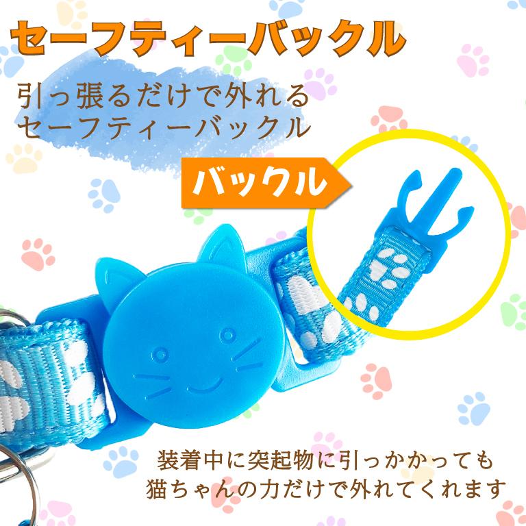 セーフティーバックル採用で突起物などにひっかかってしまった時に猫ちゃんが自力で引っ張って外すことが出来る設計になっています。