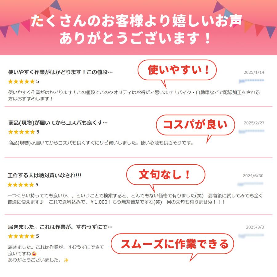 圧着 絶縁端子:0.5mm2〜6.0mm2(AWG22〜10)