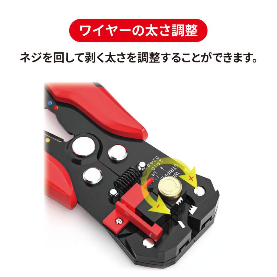 10〜24AWGのワイヤーを自動で調節し、一発で簡単に剥ぐことが可能です。