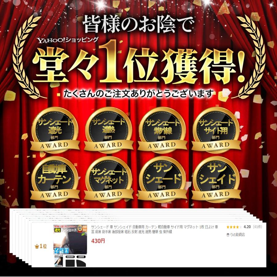 10個のマグネットを車窓の上部の金属フレームにつけるだけで誰でも簡単にサンシェードの開閉が自由自在。
