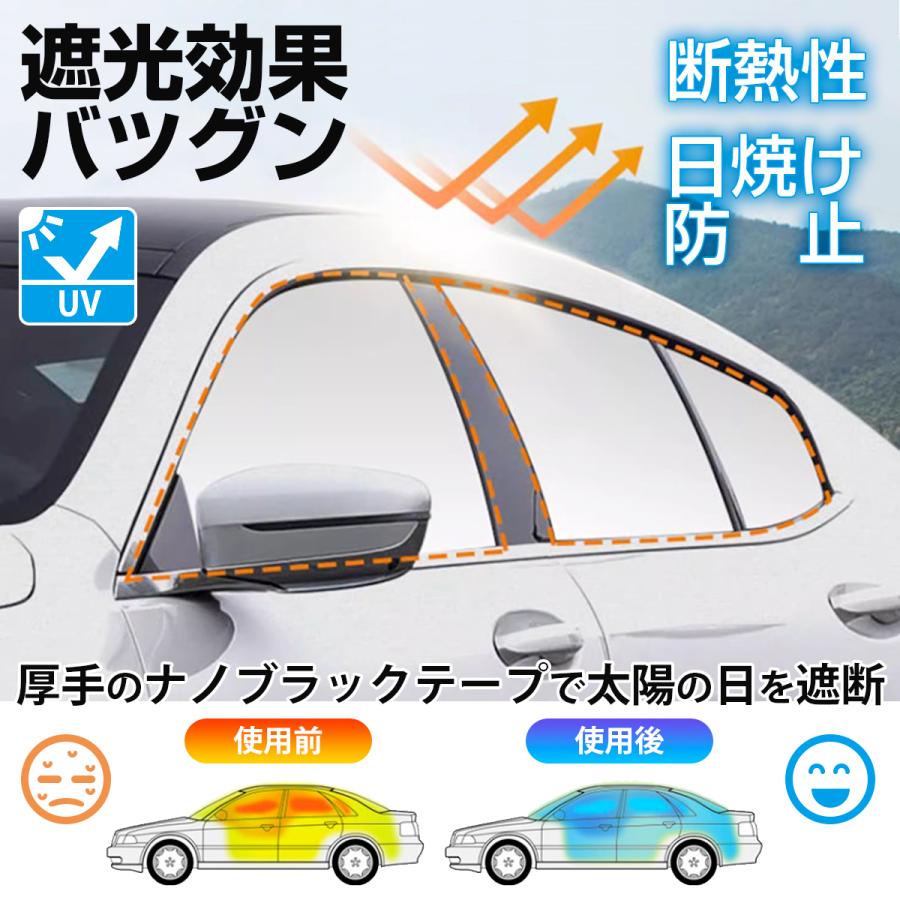 厚手のナノブラックテープで太陽の日を遮断するので車内の断熱効果が優れ、エアコンの効きを良くし車内を快適にします。