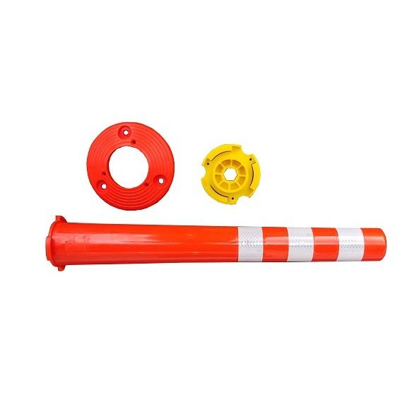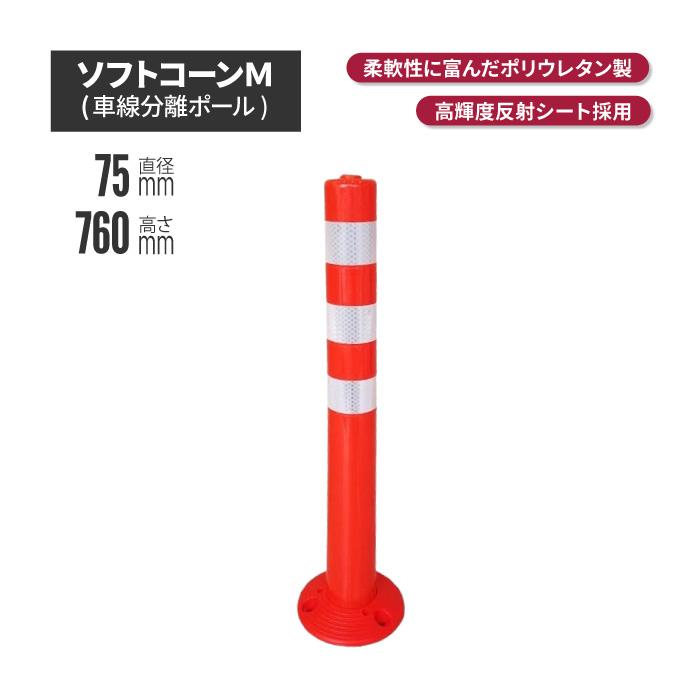 メーカー直送のため代引きでの決済は不可となります。銀行振り込み・コンビニ・クレジット・後払い決済でご購入下さい。素材は柔軟性に富んだポリウレタン製。本体には視認性に優れる高輝度反射シートを採用。アスファルト面・コンクリート面に施工可能なスクリューアンカー付属します。(設置面がアスファルトの際はエポキシ接着剤との併用の施工を推奨しています。)簡単施工で施工時間も短縮!組み立て式なので破損しやすい支柱のみの交換も可能。