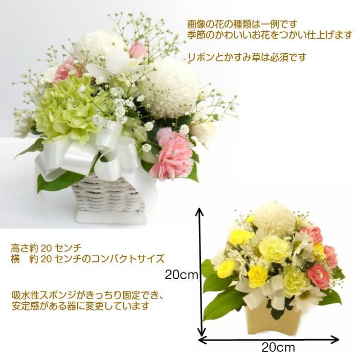 季節の新鮮なお花で作る、まるいラウンドのアレンジメントです。白、ピンク、グリーンで、サンプル写真のような雰囲気、イメージでお作りします。 ■高さ20センチ、幅20センチ■用途 ペット/お供え/御供/供花/愛犬/愛猫/お悔やみ/月命日/一周忌/三回忌