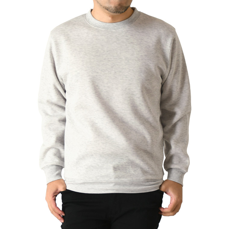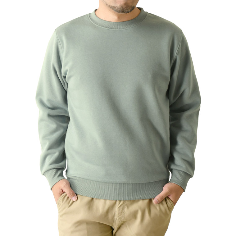 シンプルな無地のトレーナーは幅広いスタイリングに使え