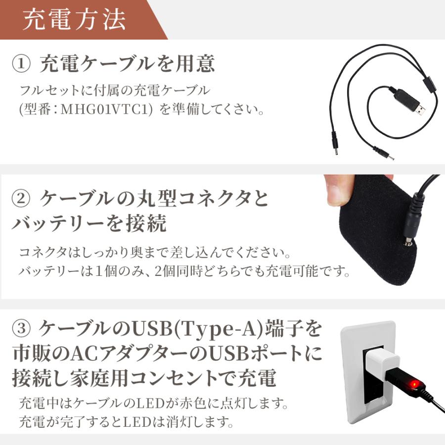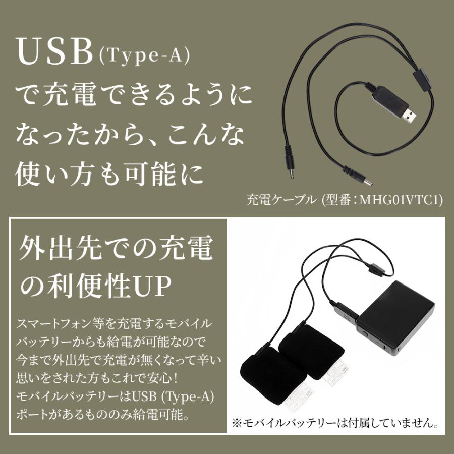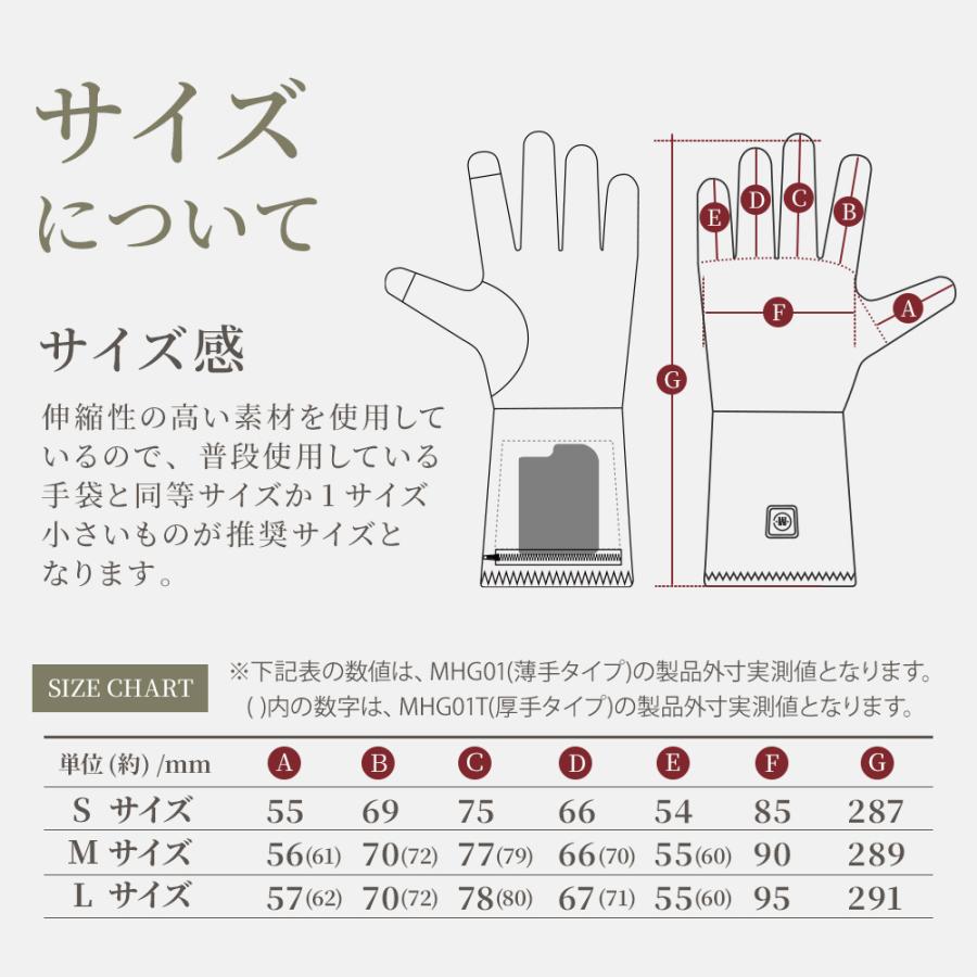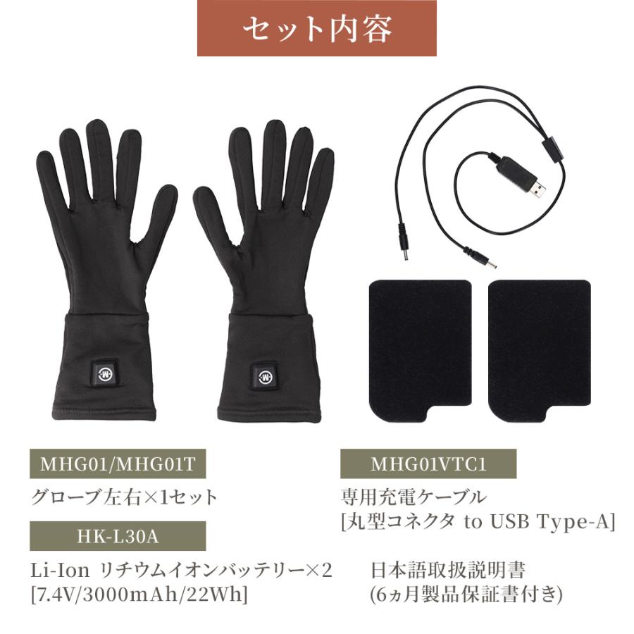 累計販売数3万双以上のめちゃヒート(R)シリーズの代名詞とも言える販売当初からのロングセラー商品。冬の防寒対策には欠かせない手がポカポカになる電熱グローブ。販売開始から11年目の今シーズンより、セット内容にUSB(Type-A)ポートで充電可能なケーブルを付属し、バッテリー容量も2000mAhから3000mAhへとマイナーチェンジ。温かさそのままに、より使い勝手がよく更にお求めになりやすい価格へとリニューアルしました。電熱ヒーターの過昇防止機能(NTC)を新たに採用し安全面も向上。インナーグローブとして使い勝手のよい薄手タイプ(生地厚約0.6mm)と、この手袋単体でも使用可能な厚手タイプ(生地厚約0.8mm)の2タイプをラインナップ。(※最大限の保温力を発揮するには、インナーグローブとしてのご使用を推奨致します。)伸縮性が高く肌触りに優れた素材を使用し、優しく温かく手を包み込んでくれます。繰り返し使えるリチウムイオンバッテリー充電式。約7-7.5時間で満充電(出力2.4AのACアダプターを使用した場合の充電時間)となり、最長約8.2時間の連続使用が可能です。(低温設定時)