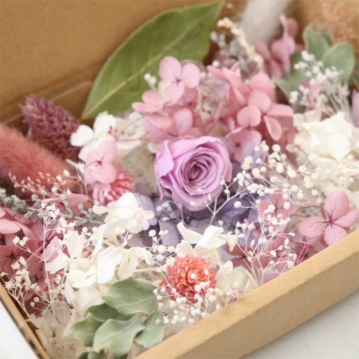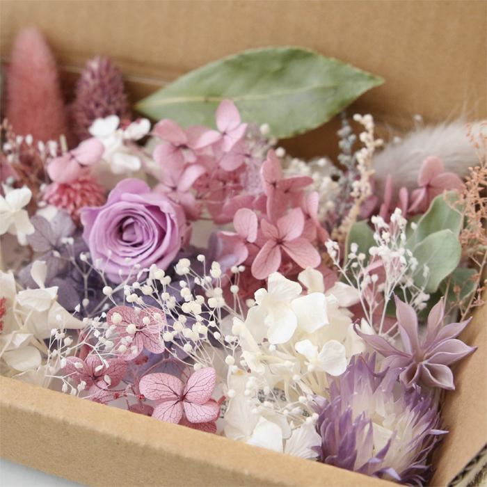 ライラックやピンクパープル、シルバーグリーンを基調としたカラーの花材詰め合わせセットです。たくさんの種類の花材が入っています!【花材内容】プリザーブドアジサイ、ラグラス、千日紅、ポアプランツ、シルバーデージー、バラ、パールアカシア、ソフトストーベ、カスミ草、ニゲラオリエンタリス、リーフ、シャワーグラス