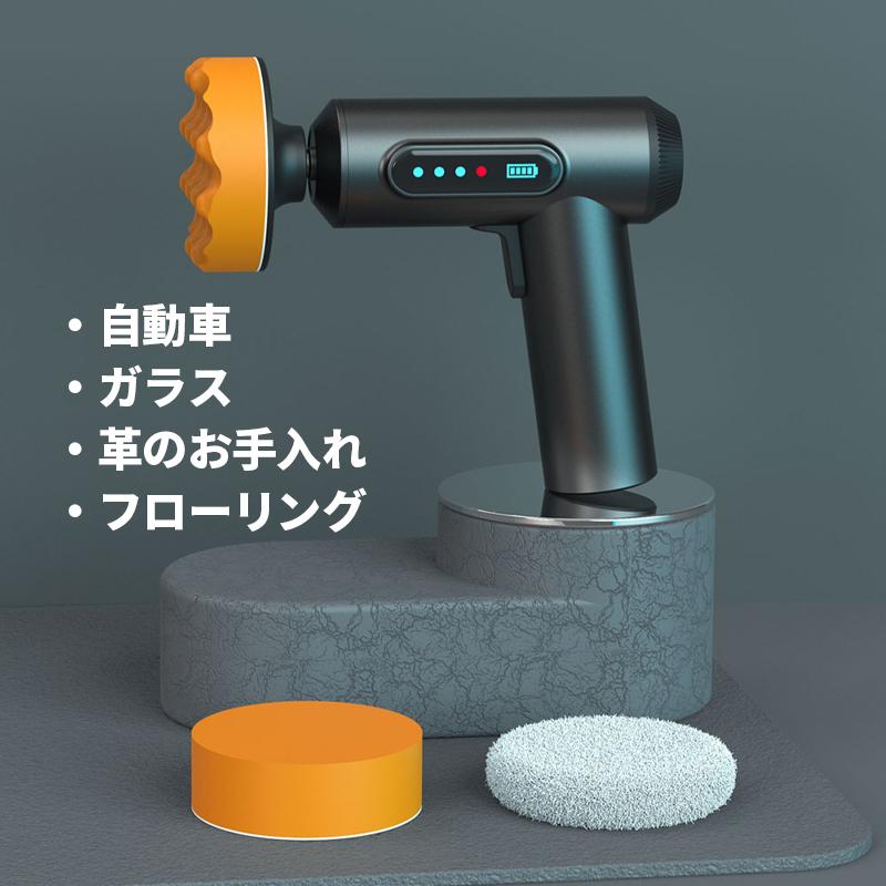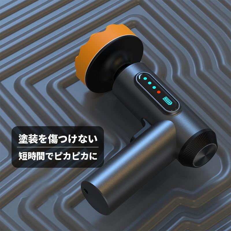 次世代コードレス電動ポリッシャー、小型軽量、電池内蔵のUSB充電式、純銅大出力モーター搭載、お車のキズ修理、ワックスがけ(塗布)に最適、ガラス、フローリング、レザー等のクリーリング、艶だしにもご使用いただけます、バフ×3点附属。