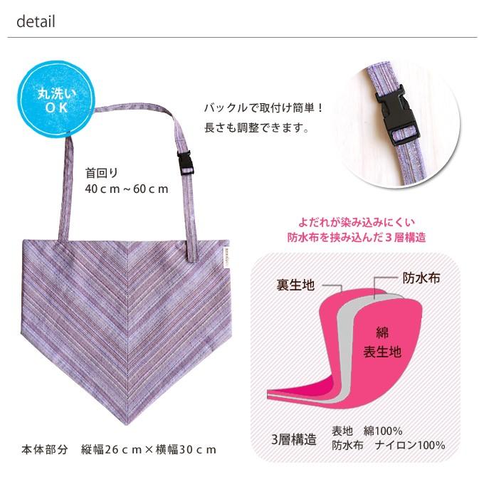 よだれがしみにくい、防水布をはさんだ3層構造。