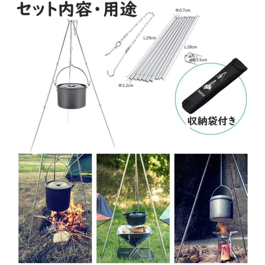 トライポッド ステンレス製 コンパクト収納 トライアングル バーベキュー コンロ レジャー アウトドア キャンプ 焚き火料理
