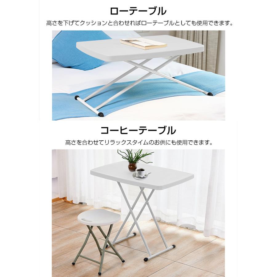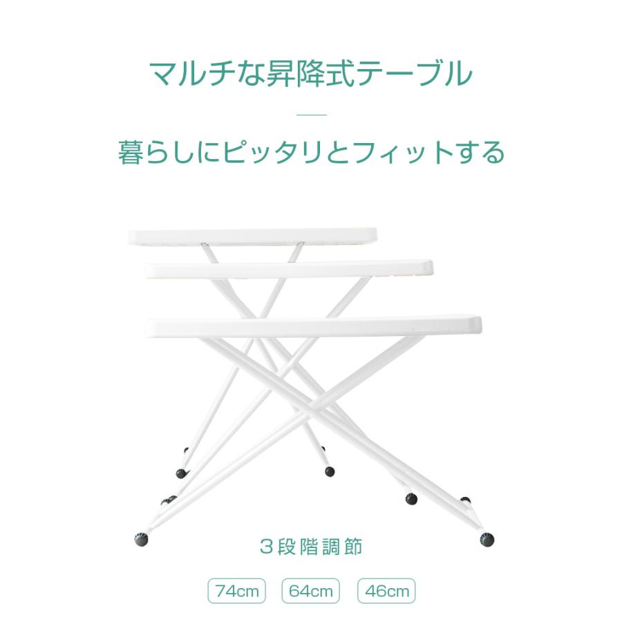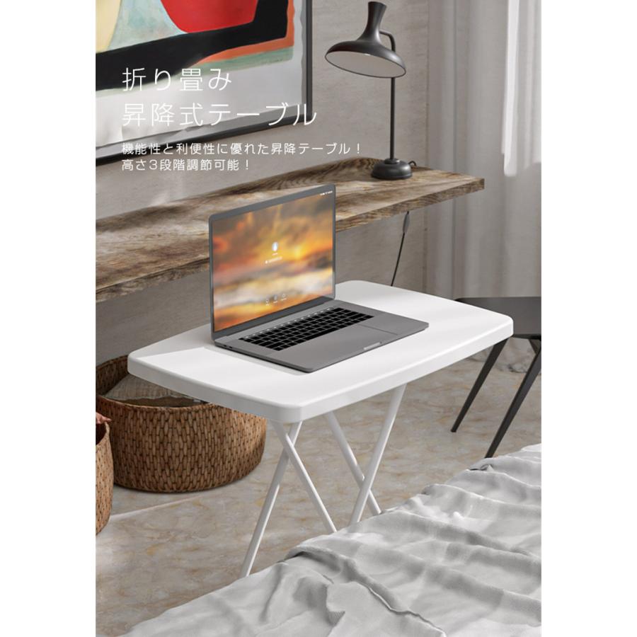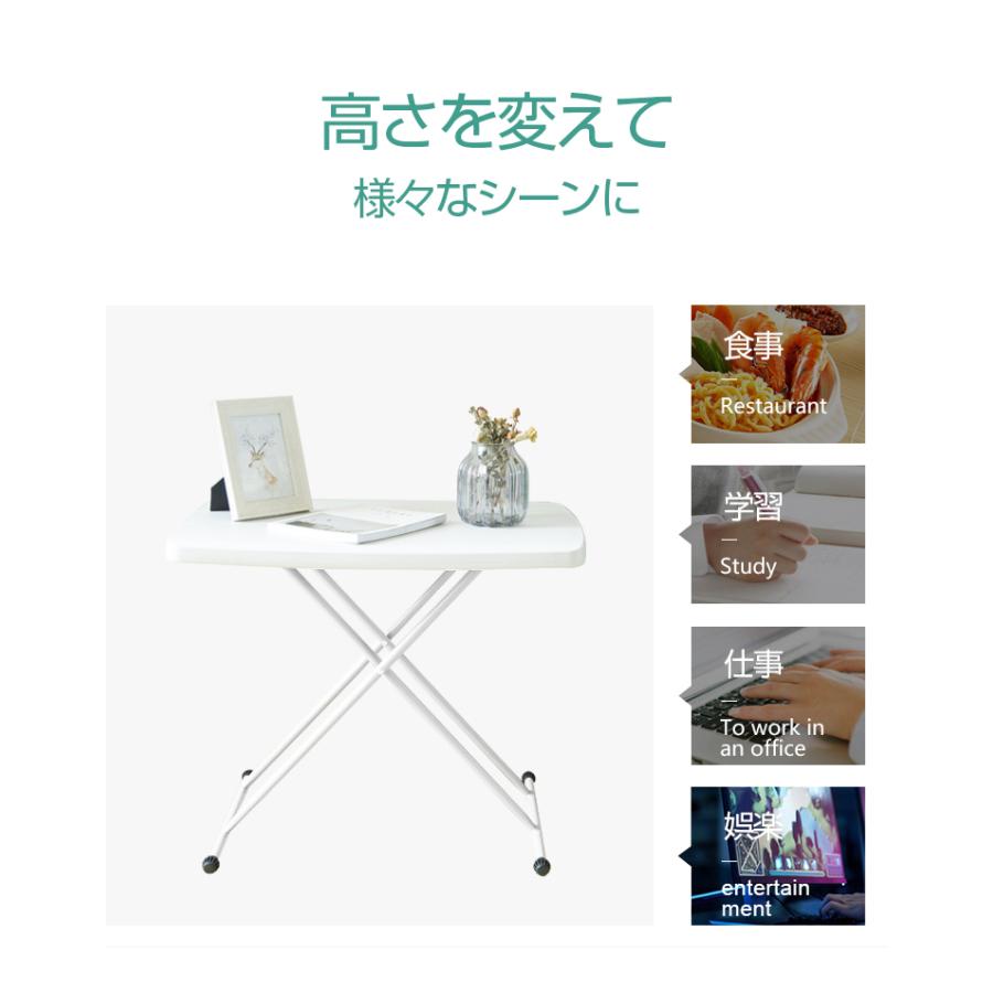 ●暮らしのスタイルに合わせて、テーブルの高さを簡単に変えられる折りたたみ式昇降テーブルです。