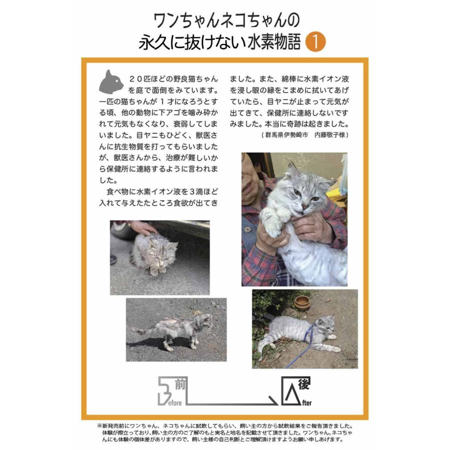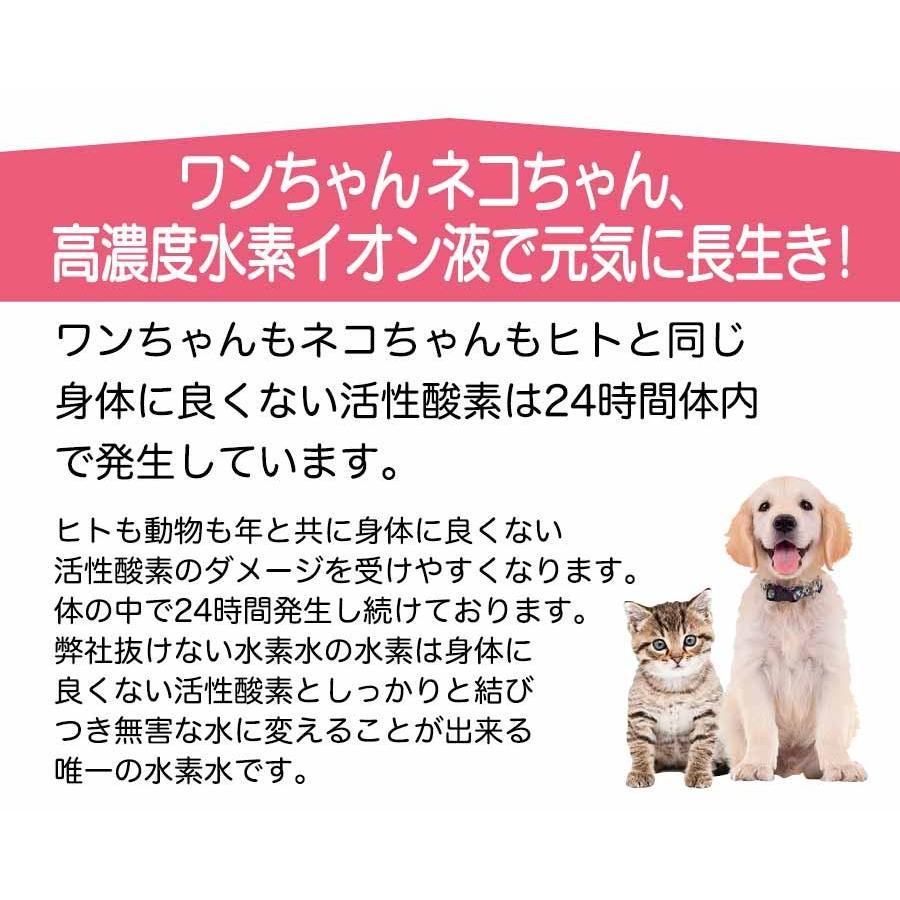 人だけではなくペットにも安心してお飲みいただけます。飲むだけではなく、水と本製品を10:1で混ぜていただくことで、化粧水などにもお使いいだけます。