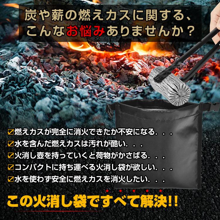 ■ほぼ鎮火した使用後の炭や薪の燃えカスを入れ、水を使わず消化できます。