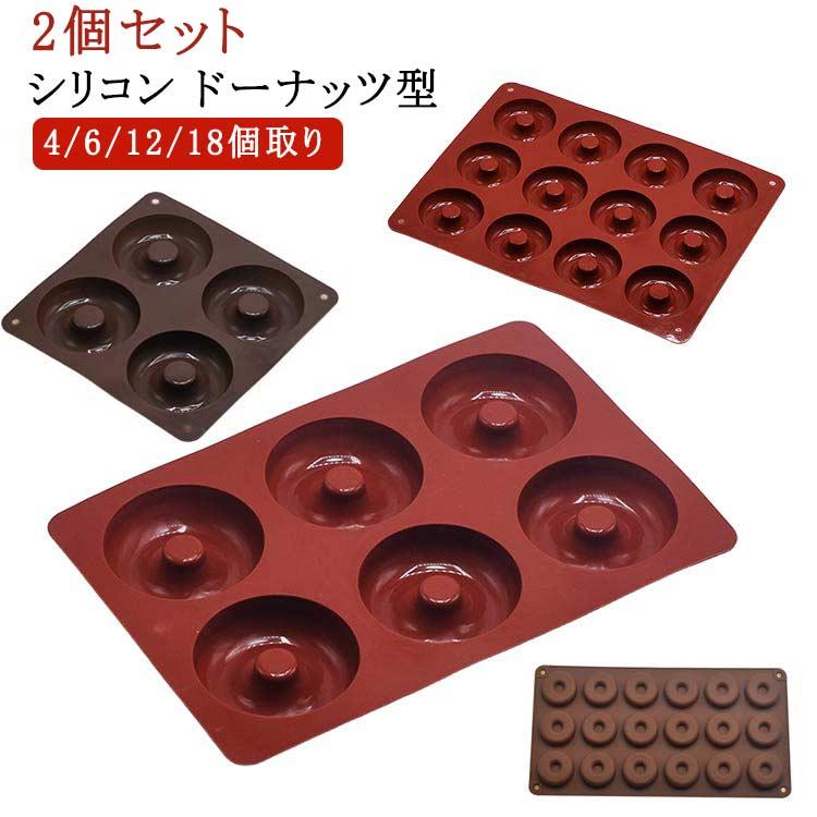 ドーナツ型 2個セット 焼きドーナツ型 4/6/12/18個取り 製菓道具 ミニドーナツ型 ケーキ型 オーブン シリコン製 ケーキ型 電子レンジ対応