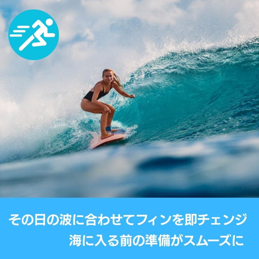ワンタッチ装着:フィンをボードに素早くセットでき、海に入るまでの準備時間を大幅に短縮できます