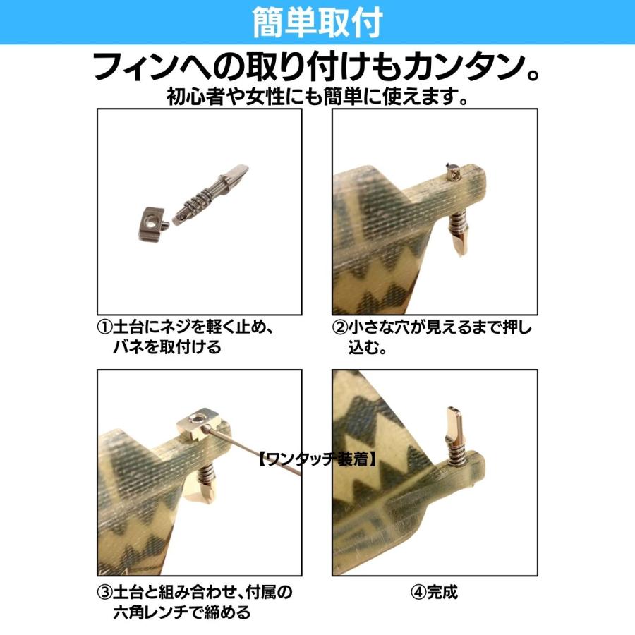 特別な工具は不要で、誰でも簡単にフィンの取り付けや位置調整が可能となります