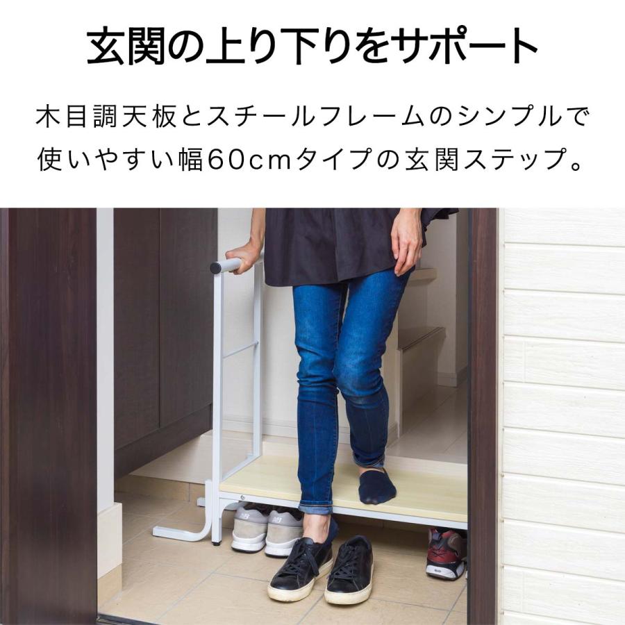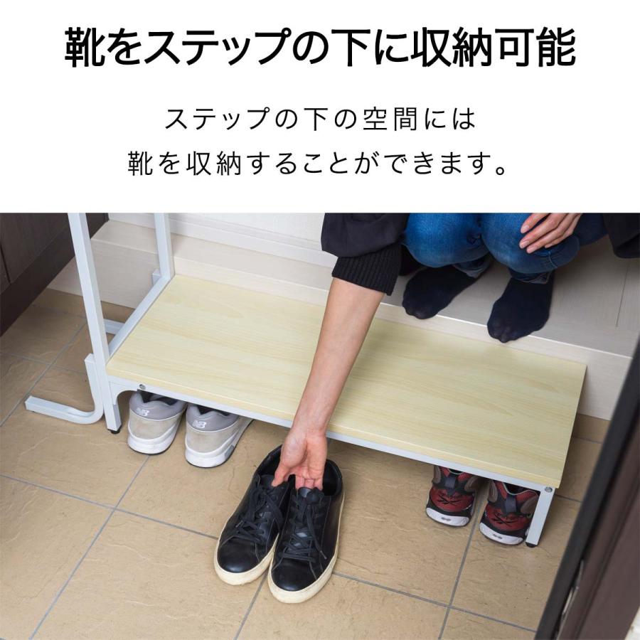 木目調天板とスチールフレームのシンプルで使いやすい幅80cmタイプの玄関ステップ。玄関の”上がりかまち”の段差を緩和し、上り下りをサポートしてくれます。