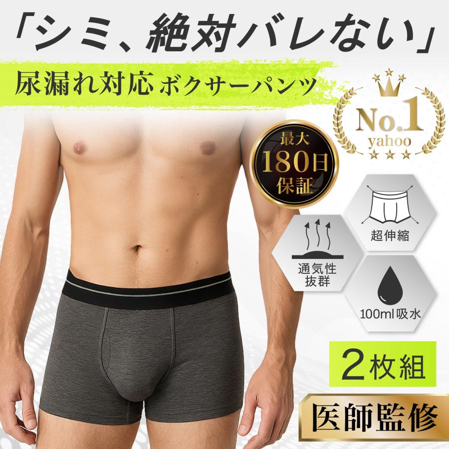 尿漏れパンツ 男性 メンズ 100cc 失禁パンツ ちょいもれパンツ 2枚セット 吸水 吸水パンツ 男性用 軽失禁パンツ 下着 ボクサーパンツ