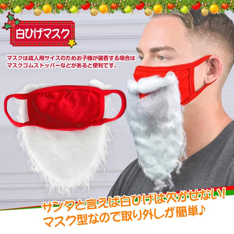 ■マスク型なので取り外しが簡単♪【商品内容】:サンタ帽子&白ひげマスク 2点セット