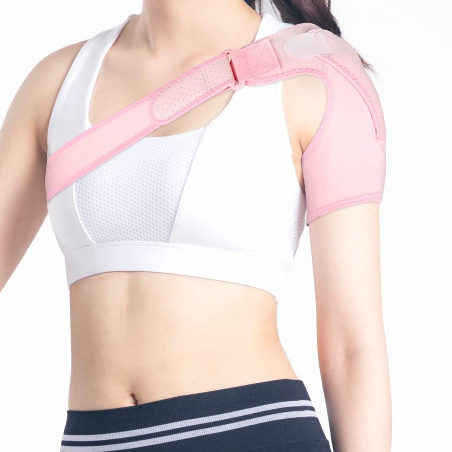 肩サポーターが邪魔にならないように動きやすく作られています。肩の負担の軽減をいたします。右肩用と左肩用がございますのでお間違いがないようお選びください。