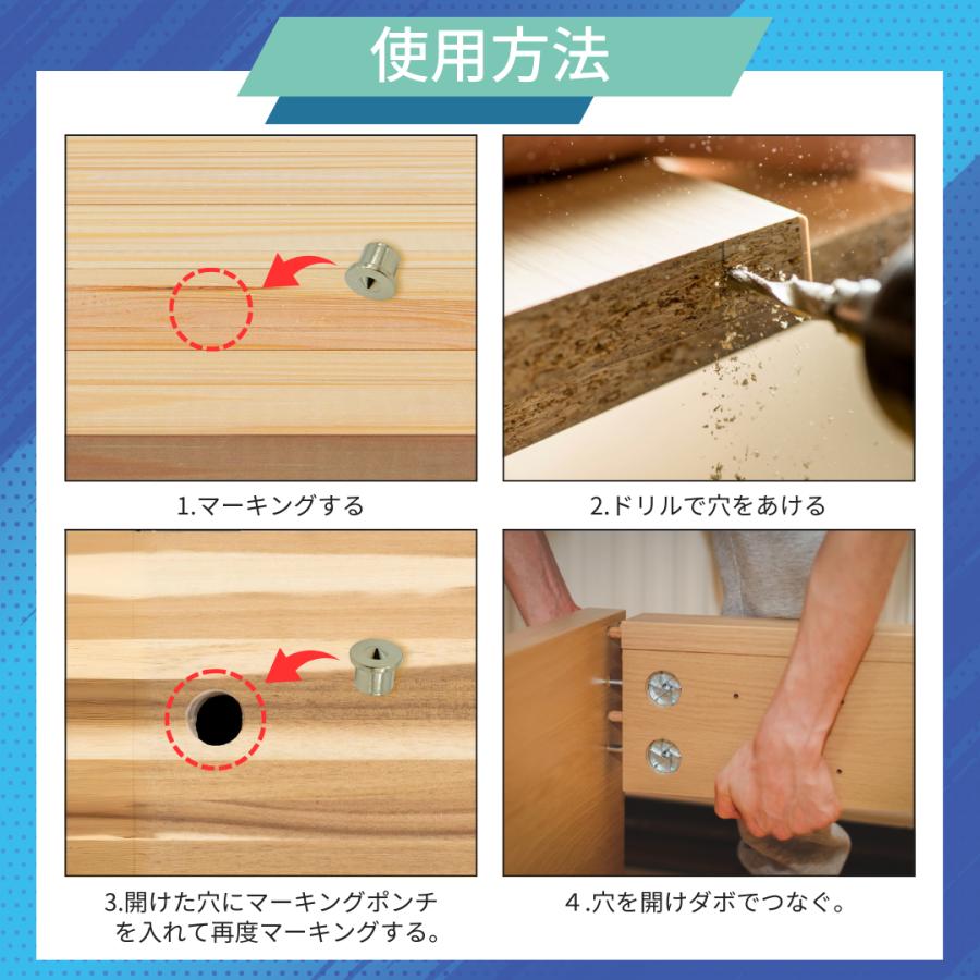 ・使用方法:マーキングポンチが付属しているので位置決めも簡単です。