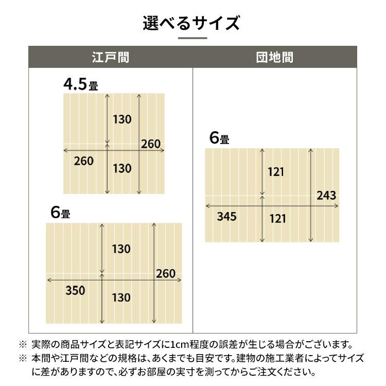 サイズは江戸間4.5畳、6畳、団地間6畳の3サイズ。カラーはナチュラル・オーク・ホワイト・ウォルナットの4カラーからお選びいただけます。