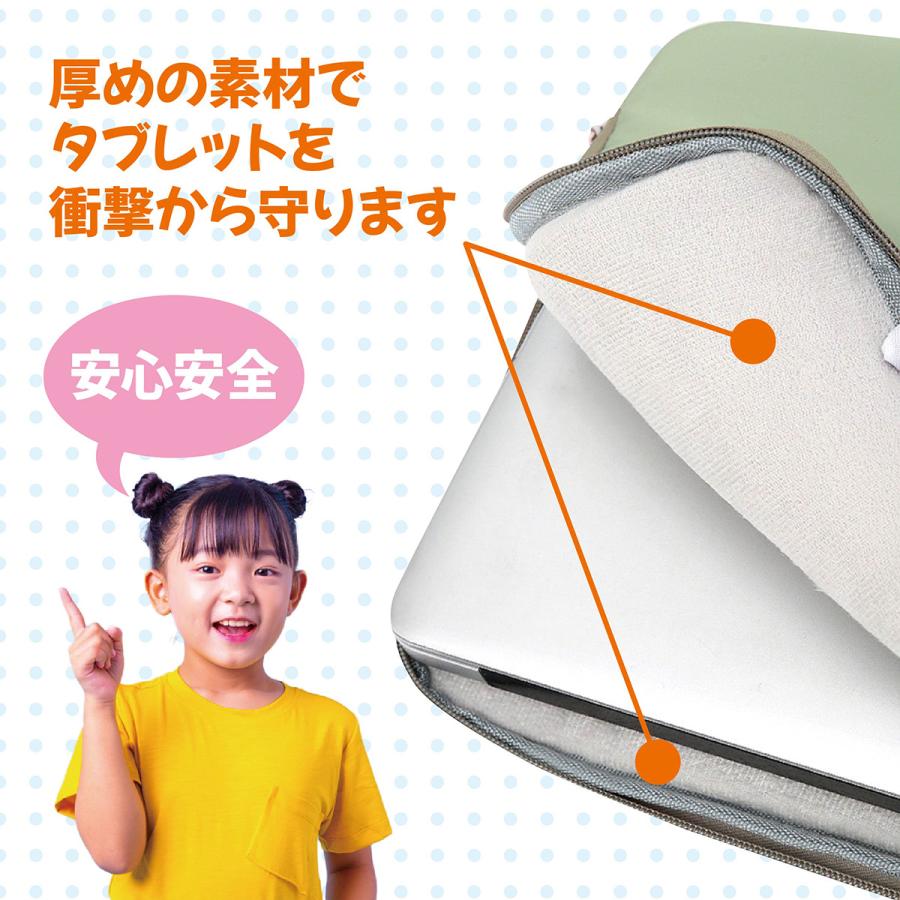 PC・タブレットケース学校で配られたPC・タブレットがスッポリ入ります!ランドセルにも入るので通学に最適です。180gと軽いので、お子様でも楽々持ち運べます。防水なので、雨の日も安心です。外側は傷がつきにくい素材を使用。中面は厚みの素材でタブレットを衝撃から守ります。内寸:縦300mm×横200mm×厚み10mm※実寸値のため誤差あり※内寸をお確かめの上、お買い求めください。