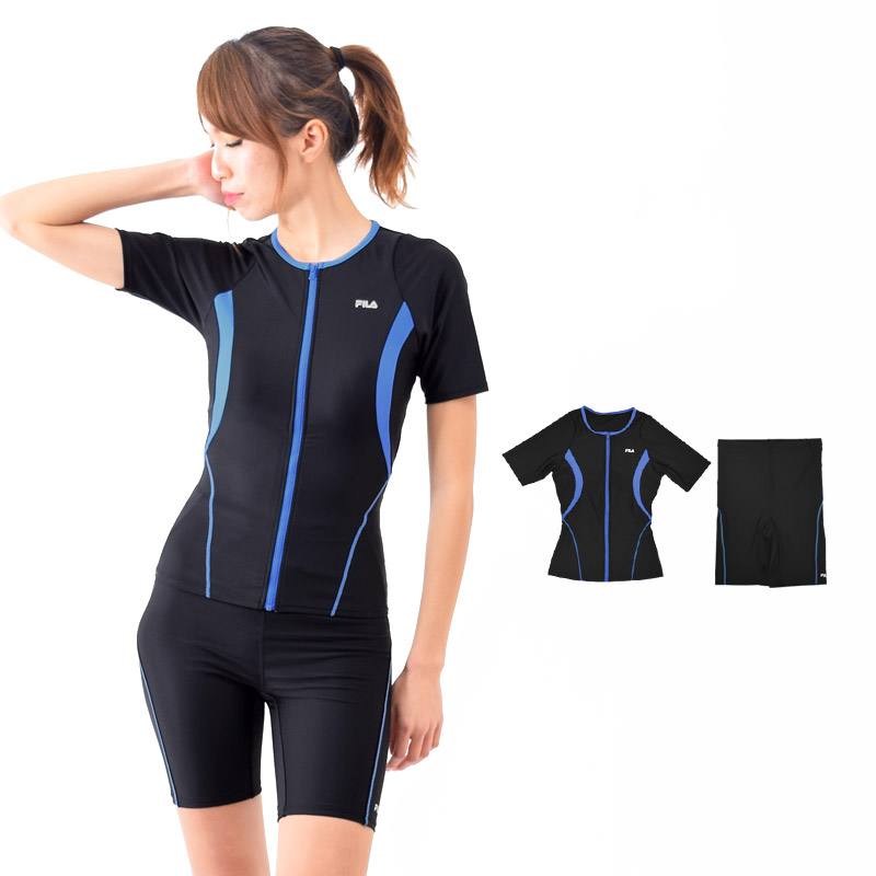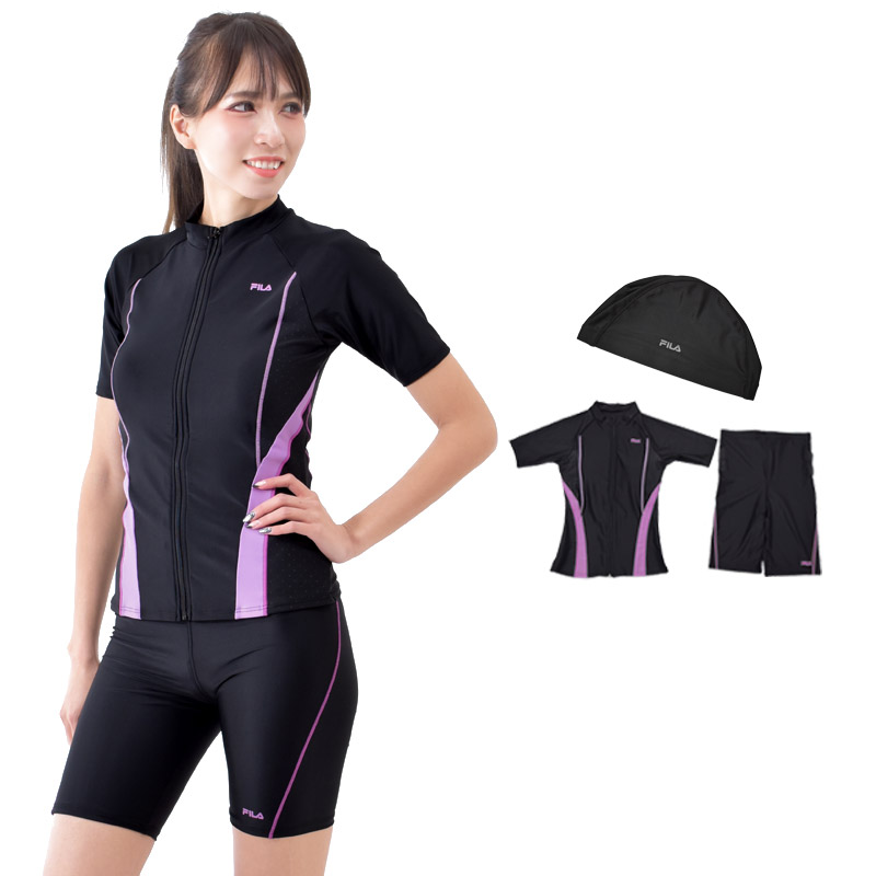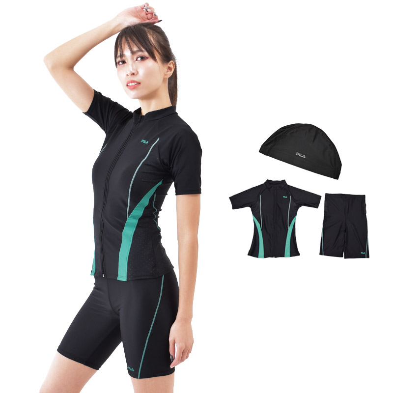 気になる二の腕もカバーできる半袖タイプのレディースフィットネス水着です。
