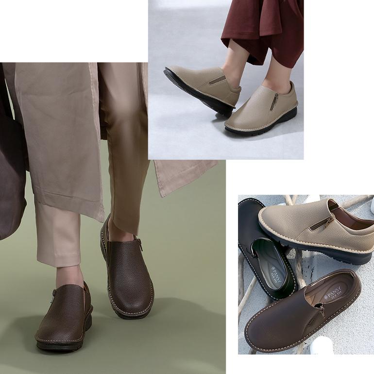 スリッポン 高反発 クッション 弾力性 歩きやすい EVA ゴム 履きやすい スライドファスナー ベーシック シンプル 素材感 高級感 ヘビロテ お出かけ 旅行 通勤 デイリー 敬老 婦人用 女性用 ギフト 贈り物 プレゼント 黒 ブラック 茶 ブラウン パンジー直営ショップ メーカー直営店