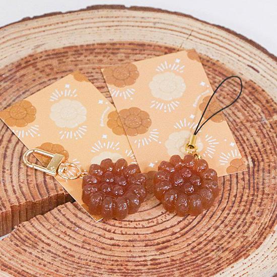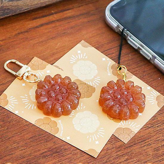 韓国の伝統菓子「ヤックァ」のキーホルダーです。レジン素材で、本物のヤックァのように見えて、とってもカワイイです。お土産やプレゼントにも!※こちらは、キーリングタイプです。サイズ 全体の長さ: 約6.5cm ヤックァ部分の直径: 約3.4cm材質: レジン、金属製造国: 韓国