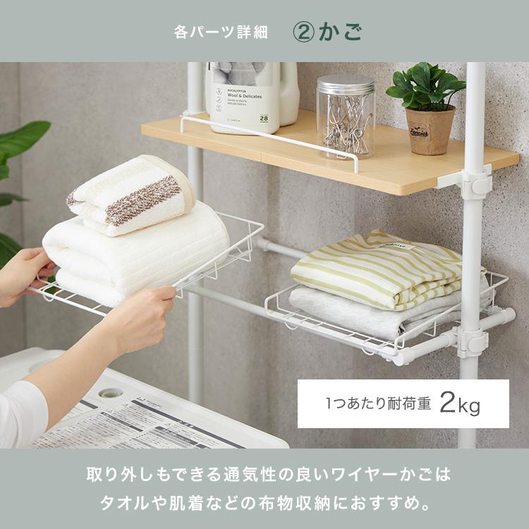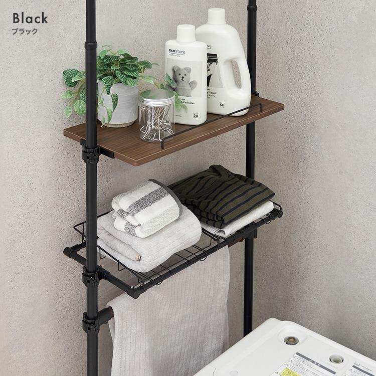 ●天井つっぱり式で洗濯機横にも奥にも設置できる洗濯機上 ランドリーラック。