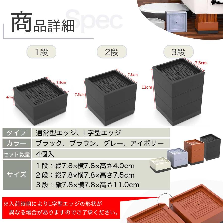 ・継ぎ脚 3段 4個セットは、机やベッド、ソファーなどの家具の高さを自由に調整できる便利なアイテムです。