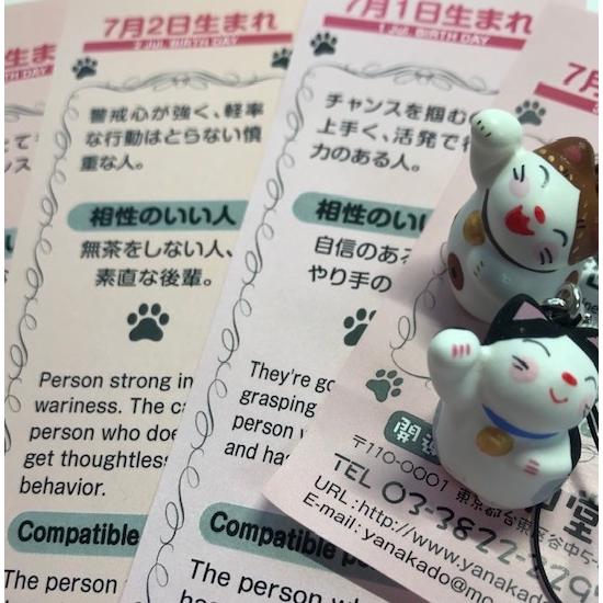 …性格占い付きの招き猫ストラップ。