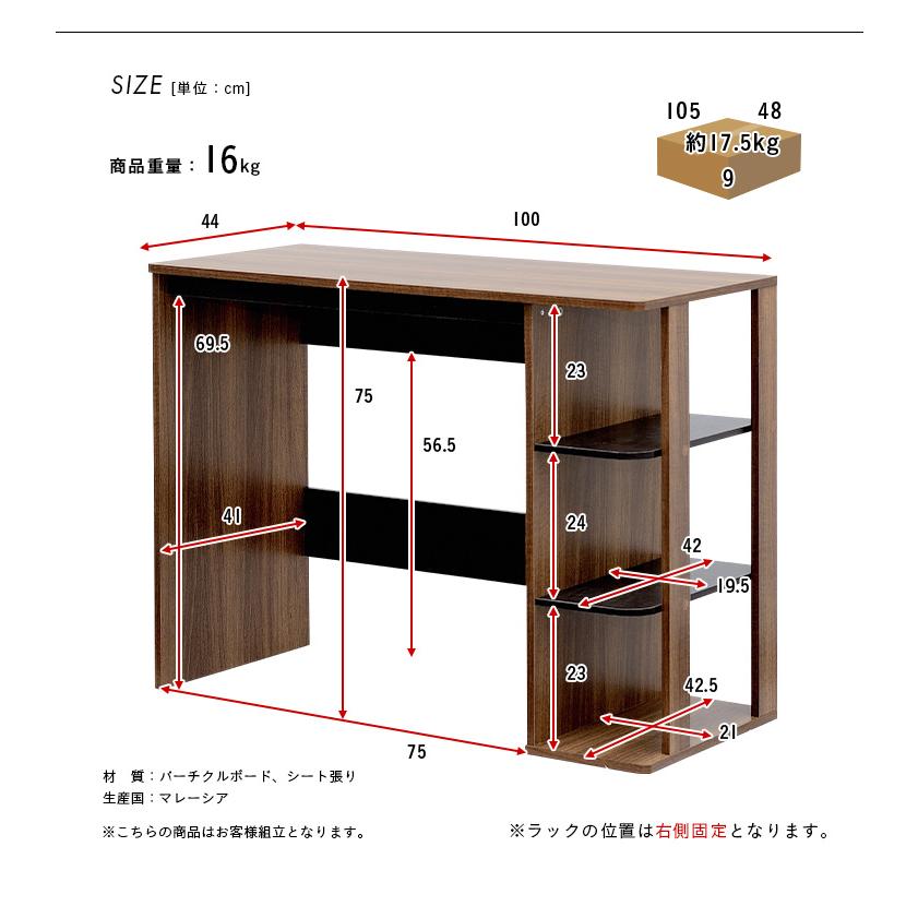 ※こちらの商品はお客様組立となります。※ラックの位置は右側固定となります。■サイズW100 × D44 × H75cm■材質パーティクルボード、シート張り■カラーウッドブラウン・ウッドホワイト・ウッドナチュラル■生産国マレーシア■送料関東〜九州:送料無料東北:980円北海道:1680円沖縄・離島:別途お見積り※商品出荷後のキャンセルはできかねます。ご了承ください。